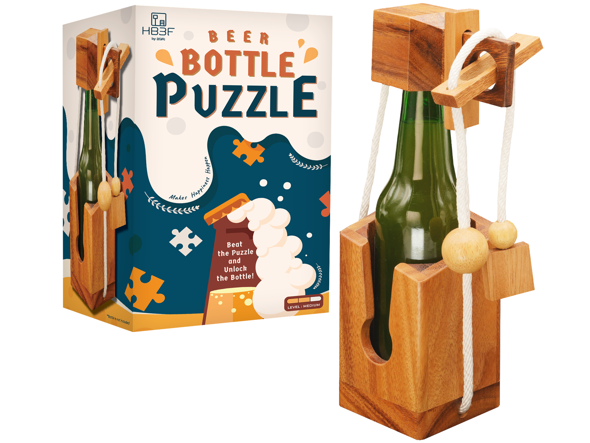 The puzzle fits a standard-size beer bottle.