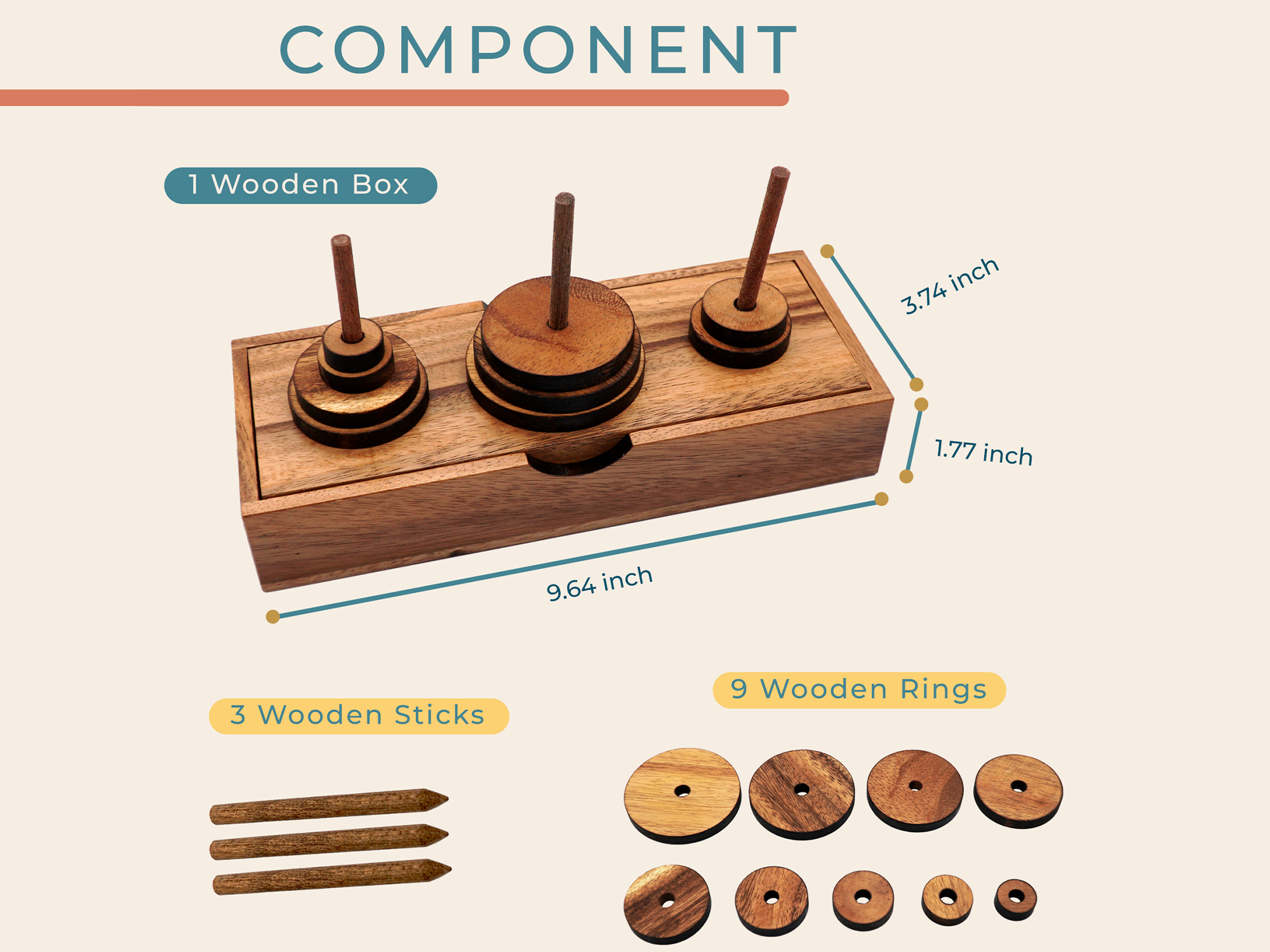 Hanoi Tower (9 Rings) Fun Puzzle Board Games Gifts with Wooden Designs for Brain Teasers Logic Games