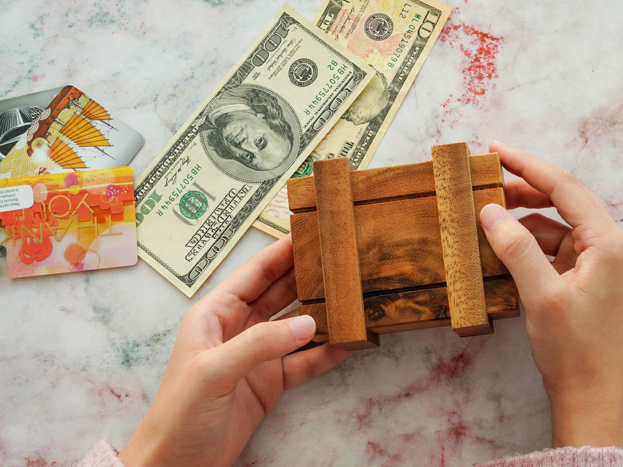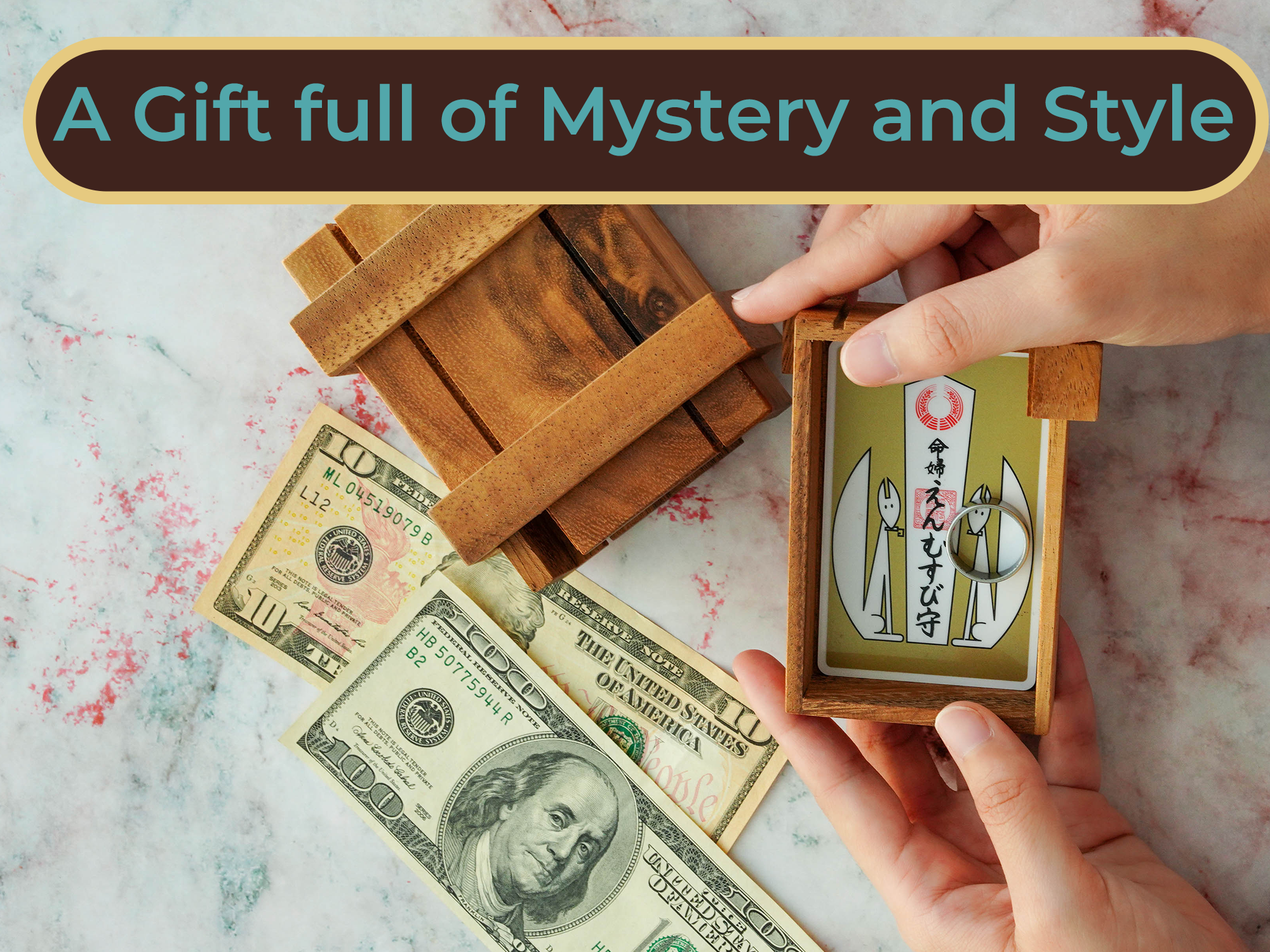 Gift Card Case Holder in Secret Box Wooden Style to Challenges Mind for Cards and Money Puzzle Magic Boxes