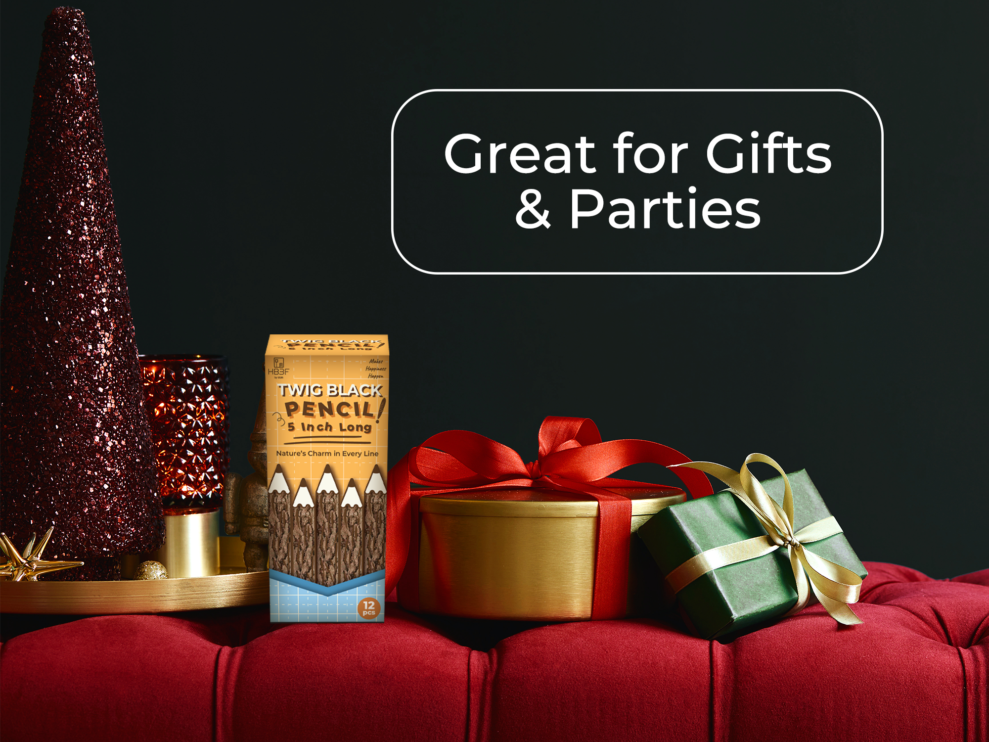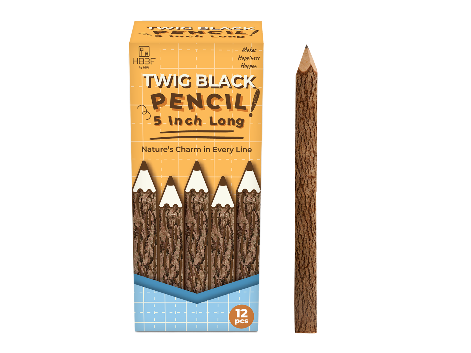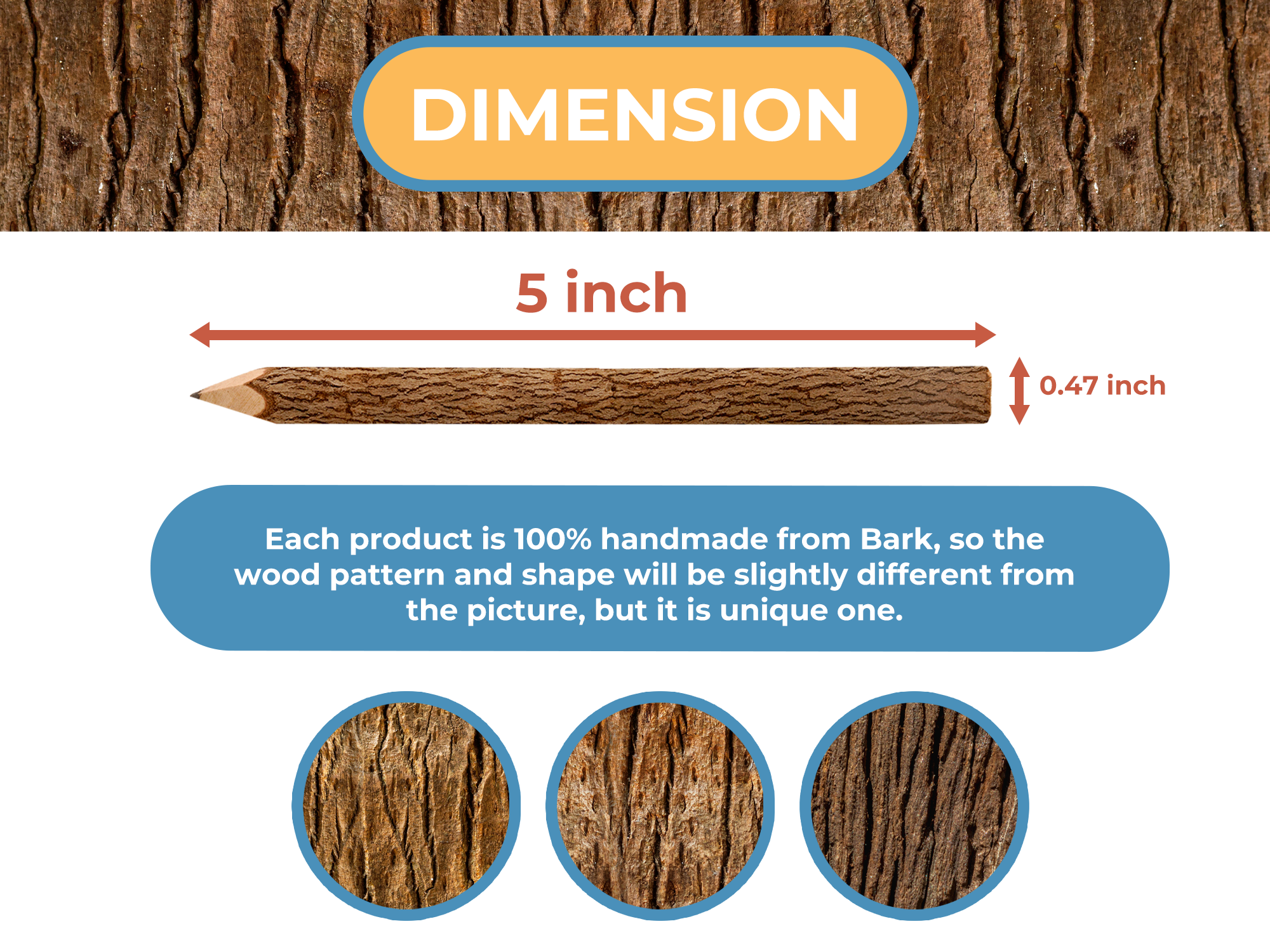 Black Wood Pencils Pack of 5” Tree Bark Wooden Favors in Rustic Twig Pencils Unique Gifts