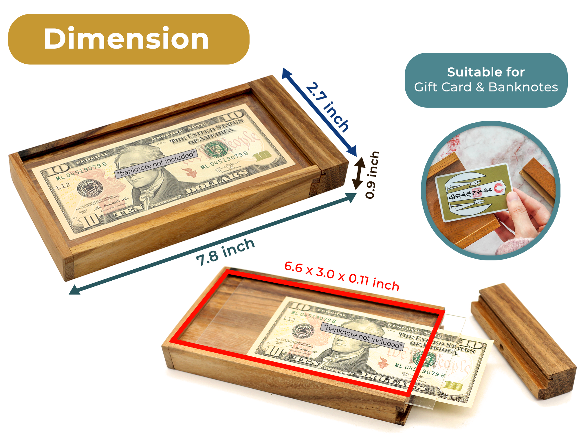 HB3F ATM Puzzle Box for Adults- Secret Box Brain Teaser Wooden Puzzle Boxes with Hidden Compartments. Ideal Mystery Money, Jewelry, 3D Puzzle Lock, Gift Card, and Money Puzzle Container