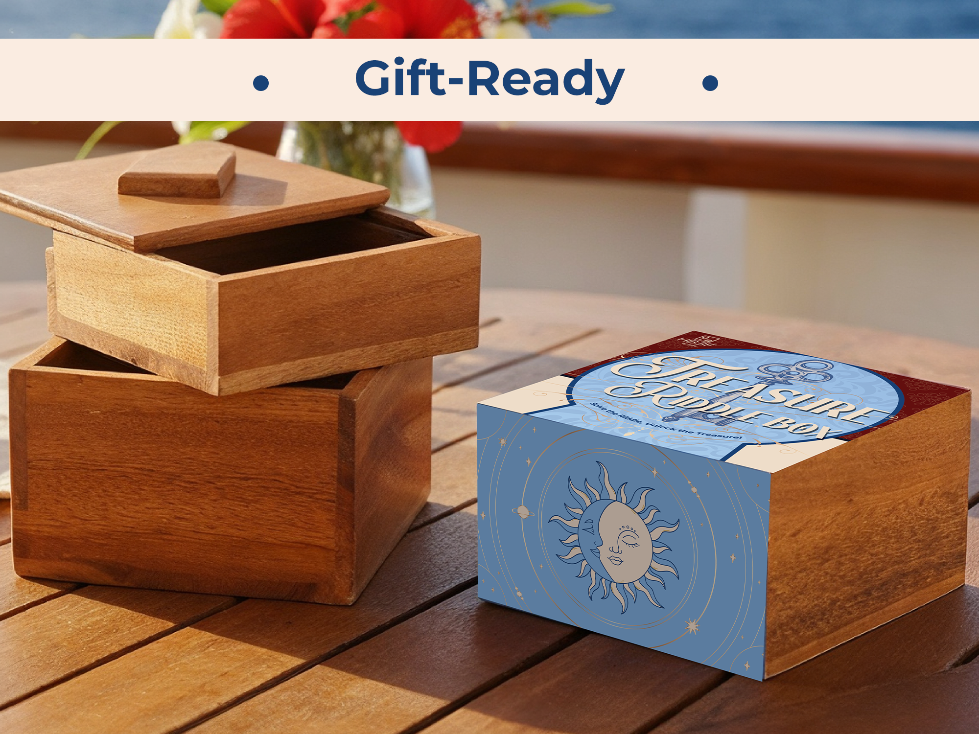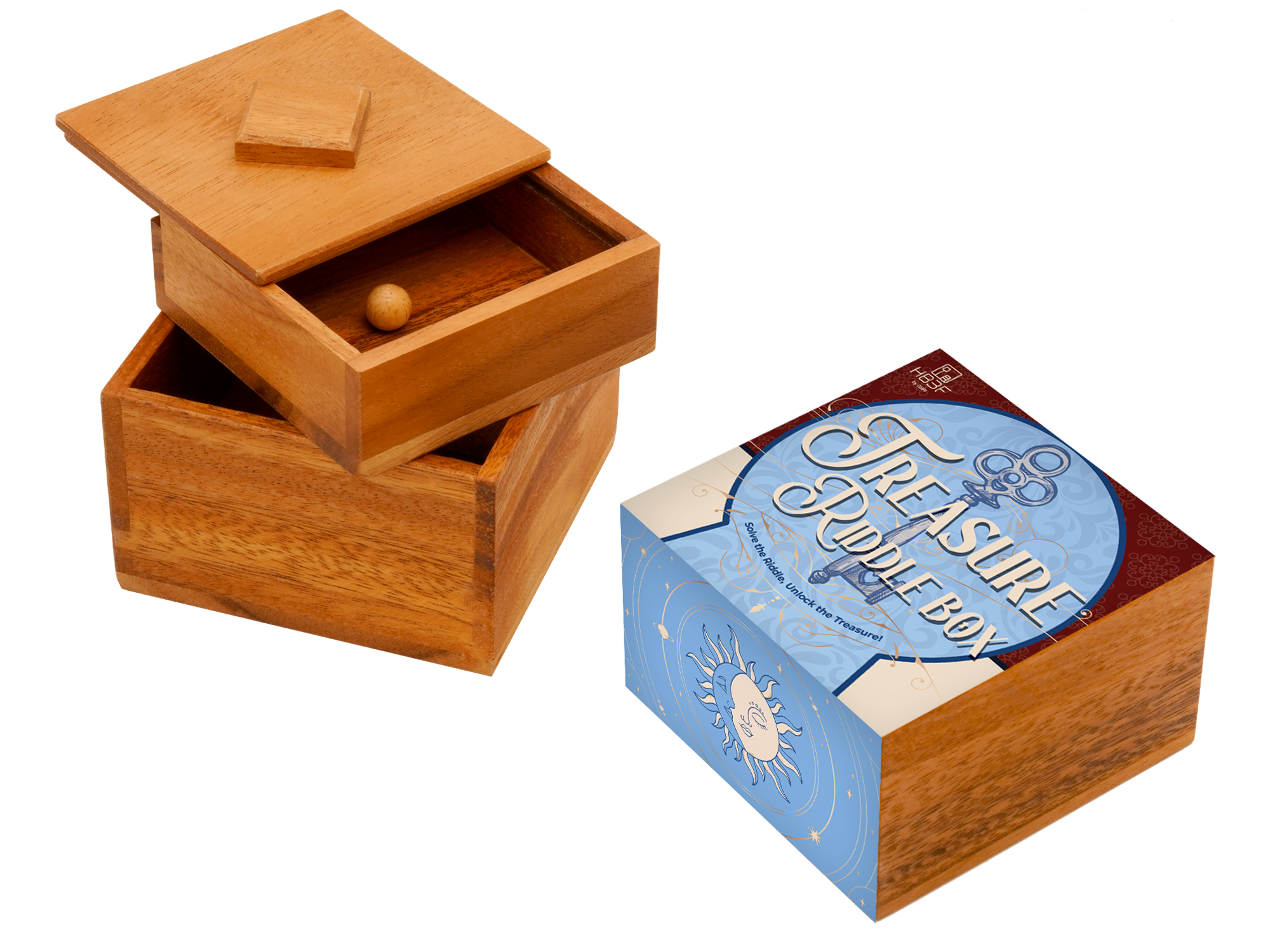 Treasure Riddle Box Secret Wooden Puzzle with Hidden Compartment Brain Teasers Puzzles for Adults