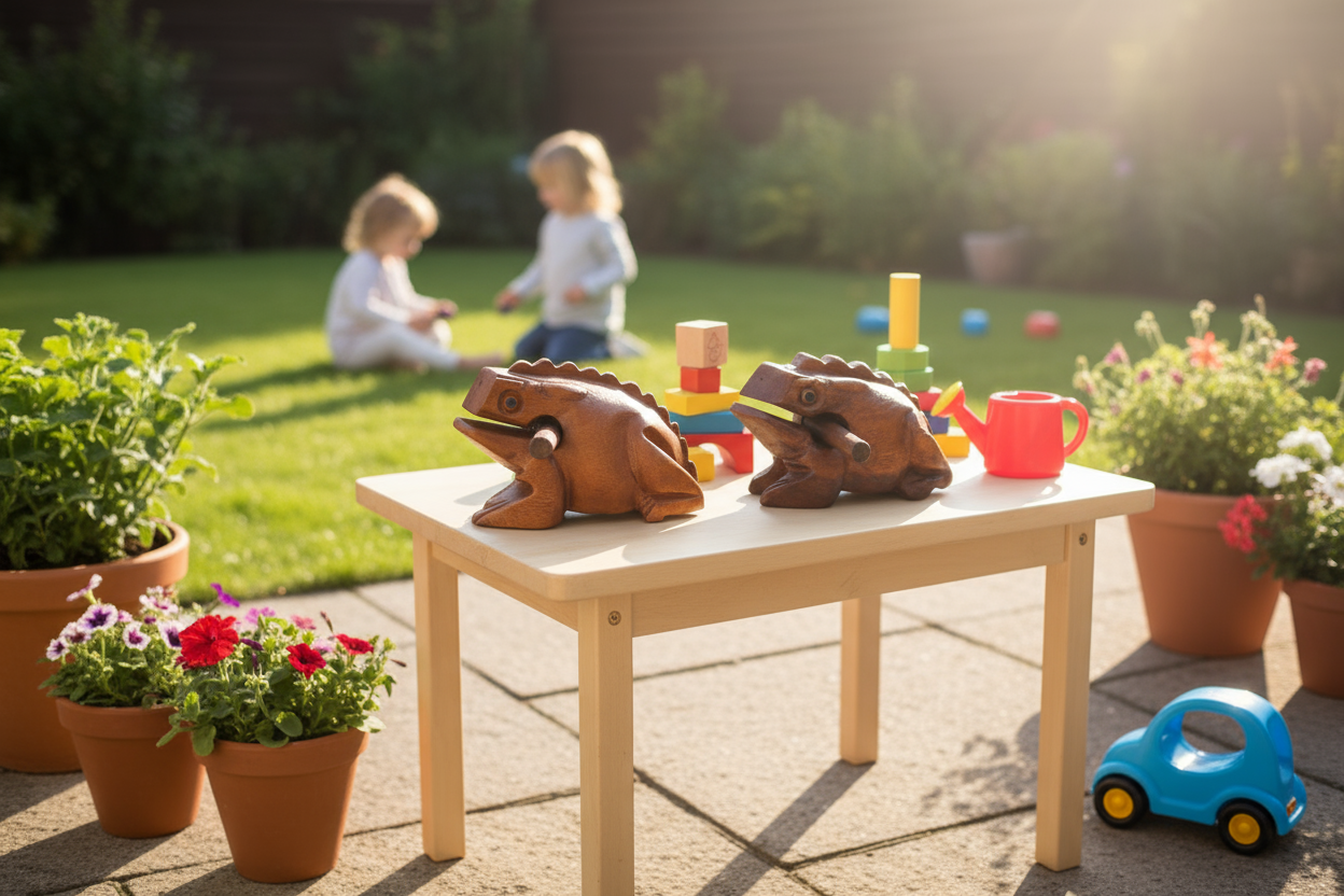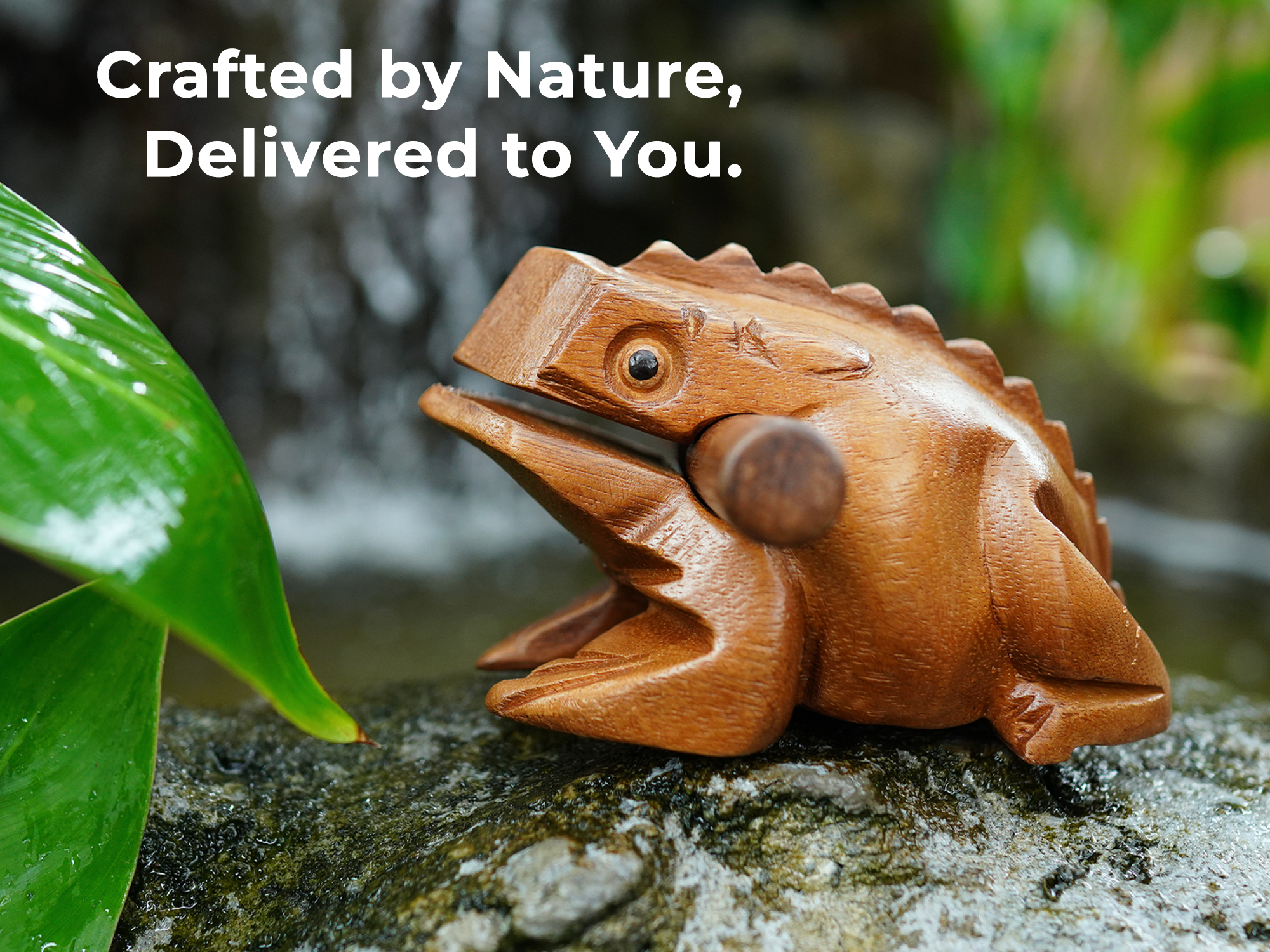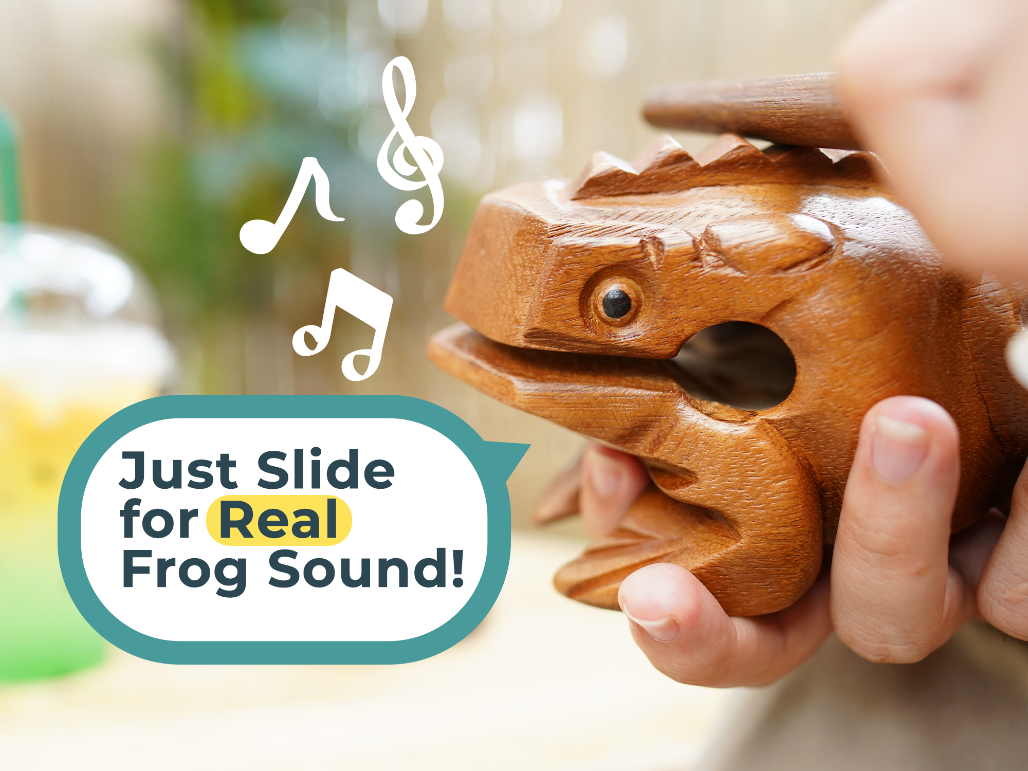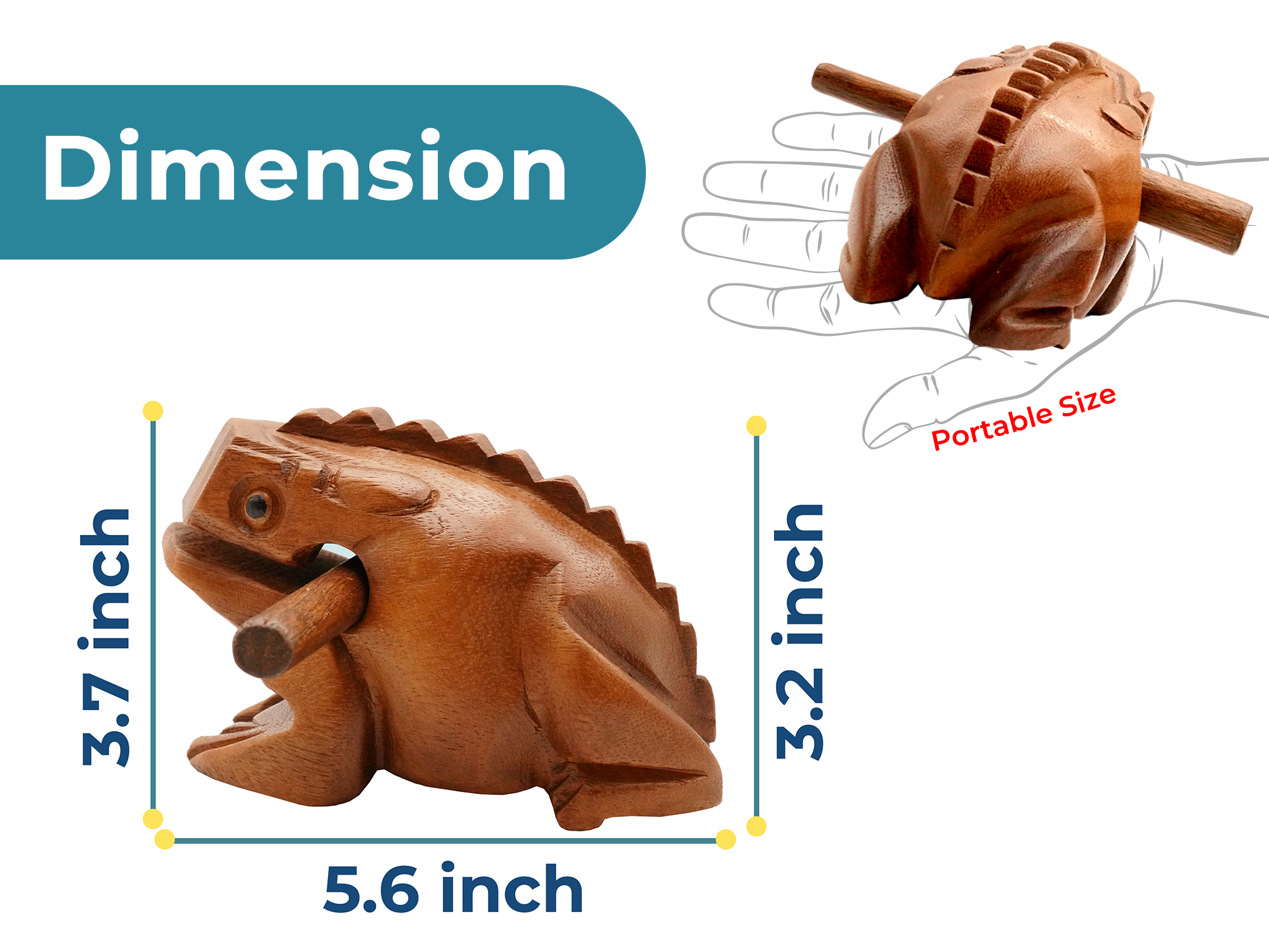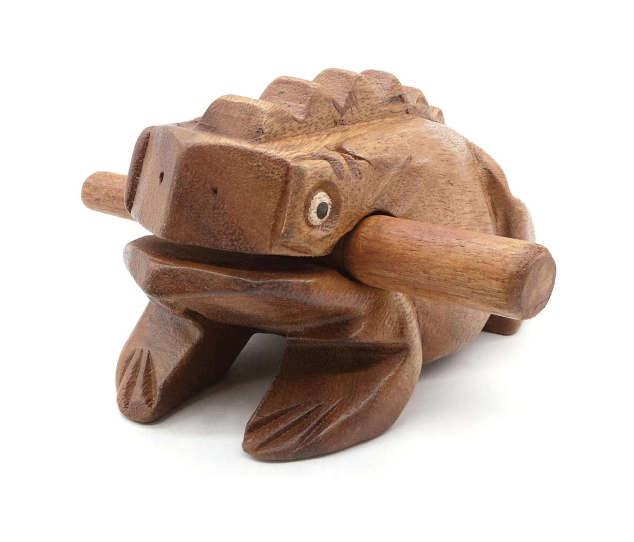 INSTRUCTIONS: Use the wood stick (included) to gently rake up the frogs back to create a lower-pitch cricket chirp. Or lightly tap the nose of the frog with a thick end of the striker to get a resonating note as a wood tone block. Store the striker in the frog's mouth.